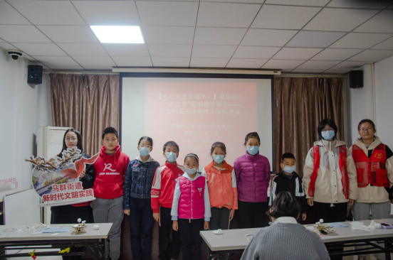 11月12日,南京市棲霞區(qū)馬群街道新時代文明實踐所、果場社區(qū)新時代文明實踐站站所聯(lián)動,在社區(qū)三樓活動室,組織社區(qū)“齊益果”積分制志愿者、社區(qū)居民學校志愿服務力量、南京師范大學向心力志愿者及社區(qū)未成年人,開展了一場“齊益果”假期趣味課堂——太陽系天體物理實驗科普課。