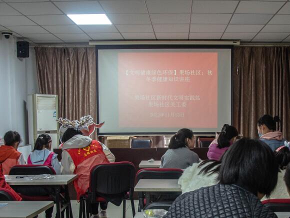 2022年11月13日,南京市棲霞區(qū)馬群街道果場(chǎng)社區(qū)關(guān)工委、社區(qū)新時(shí)代文明實(shí)踐站,組織社區(qū)“齊益果”志愿者、黨員、未成年居民、家長(zhǎng)居民等在社區(qū)三樓活動(dòng)室,開(kāi)展“秋冬季健康知識(shí)”主題講座。