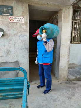 勇當(dāng)防疫“貼心管家”。樓棟長是連接社區(qū)與居家隔離群眾的重要紐帶。為引導(dǎo)群眾做好疫情防護(hù),確保居家隔離市民的日常生活需求。隔離人員因家中煤氣需要更換,便聯(lián)系他們的樓棟長滕師傅,滕師傅毫不猶豫的一口氣到五樓,把幾十斤重的煤氣罐送到隔離人員家門口,順便把隔離人員家中的日常垃圾收走,同時在門口消毒處理。