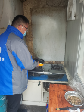 排查過程中,社區(qū)退役軍人志愿者重點檢查居民家中使用的燃氣鋼瓶、燃氣管線、連接卡口和燃氣灶具等是否存在安全隱患,通過檢查及時發(fā)現(xiàn)膠管和燃氣灶具老化等隱患問題,并利用“氣體測漏儀”,現(xiàn)場檢查了居民家中使用的燃氣鋼瓶和灶具有無漏氣的安全隱患。對于排查中符合安全標準的灶具,志愿者們及時上報給社區(qū)網(wǎng)格員,聯(lián)系燃氣公司免費更好安心管,確保城中村居民用氣安全。排查同時,社區(qū)退役軍人志愿者還向陳家院居民開展安全防范措施宣傳。