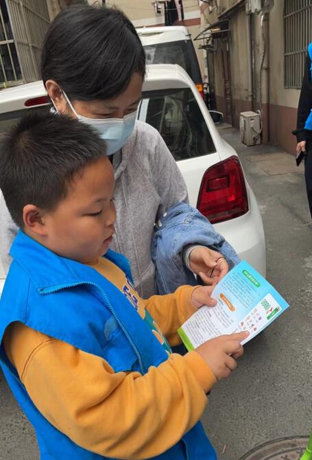 打掃衛(wèi)生結(jié)束后,孩子們在青年志愿者的手中領過垃圾分類的傳單,他們的任務是將垃圾分類的知識連帶著傳單,一起發(fā)放給周邊的商戶和居民。只見孩子們捧著傳單,遞到居民們的面前,用著支支吾吾的話語向他們講解著垃圾分類的知識和重要性。孩子們真誠的申請和熱情的笑臉獲得了周邊居民的一致贊賞和鼓勵。此情此景,在旁邊一致默默關(guān)注著的孩子們的家長,也由緊張的面孔轉(zhuǎn)變?yōu)樾牢亢拖矏偂?/p>