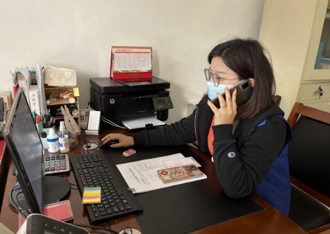 村001網(wǎng)格員端木和麗,負(fù)責(zé)大數(shù)據(jù)流調(diào)電話,及時(shí)與外地返寧居民聯(lián)系,提醒他們到村委會(huì)報(bào)備,并佩戴好口罩,做好自我防護(hù)。