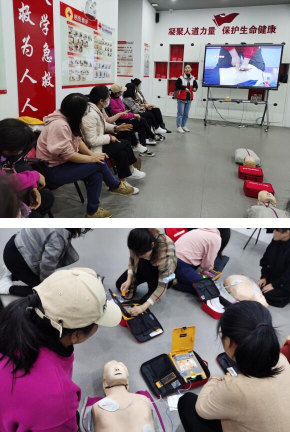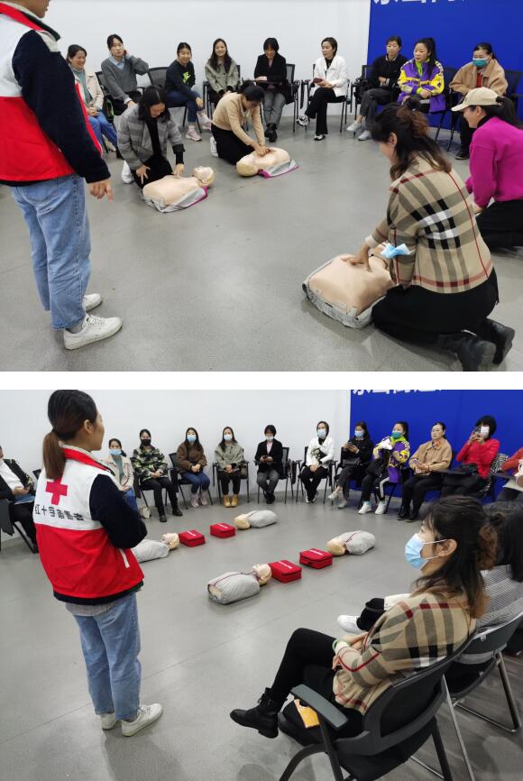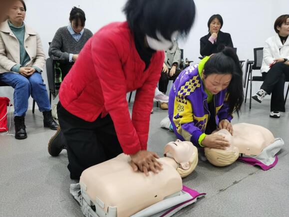 活動(dòng)中,工作人員通過實(shí)例講解、示范操作、現(xiàn)場演練等形式,圍繞常見急癥及意外傷害的急救處理、心肺復(fù)蘇、氣道梗塞急救、創(chuàng)傷救護(hù)等自救、互救知識(shí)進(jìn)行應(yīng)急救護(hù)知識(shí)培訓(xùn)。工作人員首先詳細(xì)講解了心肺復(fù)蘇的要點(diǎn)操作,現(xiàn)場為大家展示了胸外按壓、人工呼吸等心肺復(fù)蘇技術(shù)手法,告知大家遇到突發(fā)事件如何第一時(shí)間作出反應(yīng),如何抓住寶貴急救“黃金4分鐘”,并提醒大家要根據(jù)被救者的實(shí)際情況進(jìn)行施救,避免造成二次傷害。
