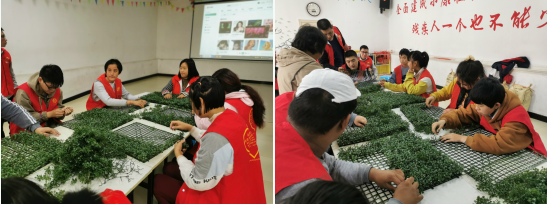 上午九點(diǎn),手工草坪競賽活動(dòng)正式開始。活動(dòng)現(xiàn)場,項(xiàng)目執(zhí)行人員將殘疾人每四人分成一組,并為每一組分發(fā)了制作草坪的材料,并教學(xué)復(fù)習(xí)了手工草坪的正確制作方法,為了服務(wù)對(duì)象在接下來的比賽能夠更加順利地完成比賽。