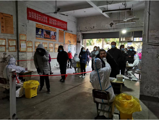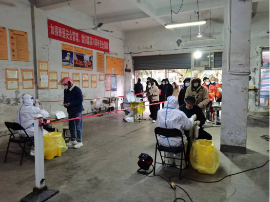 12月初的冬天,天氣陰涼,給社區(qū)開(kāi)展規(guī)模性核酸檢測(cè)工作帶來(lái)一定挑戰(zhàn)。為保障社區(qū)居民核酸采樣時(shí)少受天氣影響,連日來(lái),南京市棲霞區(qū)馬群街道果場(chǎng)社區(qū)新業(yè)態(tài)單位主動(dòng)將空置場(chǎng)地提供給社區(qū),為社區(qū)居民提供幫助。