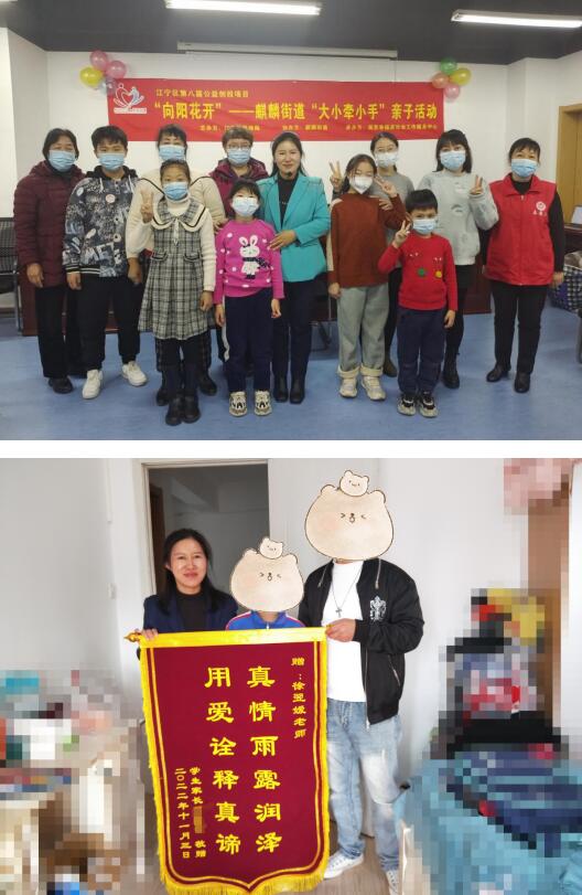 南京幸福家社會工作服務(wù)中心在江寧區(qū)民政局第八屆公益創(chuàng)投項目中承接的“向陽花開”項目即將收官。 2022年12月10日下午,由江寧區(qū)民政局主辦、麒麟街道民政辦和婦聯(lián)協(xié)辦、南京幸福家社會工作服務(wù)中心承辦,在麒麟街道文體中心開展了一場“大手牽小手”結(jié)項親子活動,旨在通過本次活動對近半年來項目的開展情況進(jìn)行回顧、總結(jié),特設(shè)現(xiàn)場答疑,進(jìn)一步解決家庭教育問題,同時加強親子間的溝通交流,增進(jìn)親子關(guān)系,也為小朋友們提供一個自我展示的平臺。