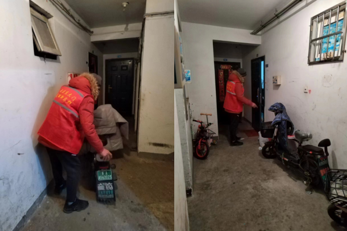 整治行動中,志愿者們每晚對轄區(qū)各樓道展開巡邏檢查,對違規(guī)停放在樓道的非機動車進行了集中清理,對違規(guī)停放車輛的居民進行教育引導和及時糾正,勸導居民正確停放非機動車輛。同時,志愿者們也進一步加強了對小區(qū)的小門區(qū)域的巡邏檢查,將占用通道、未按規(guī)定停在白線內的非機動車全部移至統(tǒng)一設置的停車點,保持朝向一致、規(guī)范停擺,耐心引導其他車主將非機動車整齊停放至指定區(qū)域,提醒大家按規(guī)停車、文明出行。
