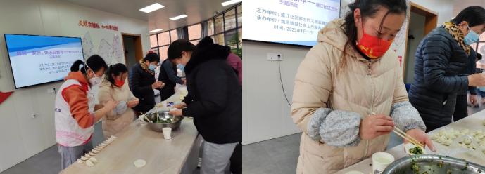 活動現(xiàn)場洋溢著居民們的閑聊聲和笑聲,大家一邊包餃子一邊相互切磋包餃子的技巧,彼此比較著餃子的形狀,活動現(xiàn)場熱鬧非凡。