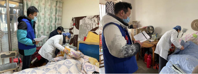 針對老年人常見疾病,醫(yī)護人員準備好醫(yī)療箱,與網(wǎng)格員耐心敲開老年人的家門,用專業(yè)的能力和溫和的態(tài)度耐心為老年人解答疑惑,并根據(jù)身體情況給出合理的調(diào)理意見。“你們能在假期內(nèi)給我們上門服務(wù),我們真的挺感動的!”高奶奶的家屬在問診結(jié)束后對網(wǎng)格員和醫(yī)護人員表達了深深的感謝。在給老年人進行血氧、血壓等檢測時,網(wǎng)格員不忘與老年人家屬拉拉家常,關(guān)心每一戶的家庭生活情況,了解有無困難之處,一一詳細記錄下來,方便后期工作開展。