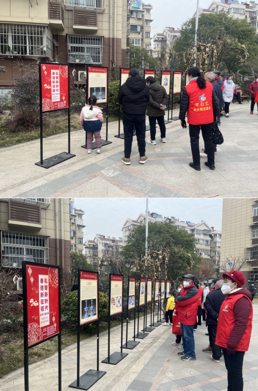 本次活動(dòng)以《中國(guó)傳統(tǒng)吉祥圖案》展板形式在社區(qū)廣場(chǎng)進(jìn)行展出,以鴻福、長(zhǎng)壽、吉祥、喜慶等吉祥寓意分類(lèi),展示了中國(guó)傳統(tǒng)吉祥圖案的符號(hào)構(gòu)成及其背后的故事,每天吸引了較多居民前來(lái)觀賞,激發(fā)居民對(duì)優(yōu)秀傳統(tǒng)文化的興趣,并樹(shù)立對(duì)本民族文化的自信心。居民喜悅得說(shuō):“這次活動(dòng)讓我們學(xué)到了非遺知識(shí),體會(huì)到了非遺文化的魅力,也豐富文化生活,真是太好了!”