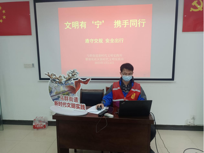 2023年1月13日上午,棲霞區(qū)馬群街道馨康苑社區(qū)新時(shí)代文明實(shí)踐站聯(lián)合馬群街道新時(shí)代文明實(shí)踐所在馨康苑社區(qū)開(kāi)展了“文明有‘寧’,攜手同行”之遵守交規(guī)安全出行宣講活動(dòng)。此次文明宣講活動(dòng)社區(qū)邀請(qǐng)了馬群派出所和綜治文明辦的相關(guān)人員一起參與,旨在幫助社區(qū)居民規(guī)范自己的交通出行行為,養(yǎng)成文明出行的習(xí)慣。