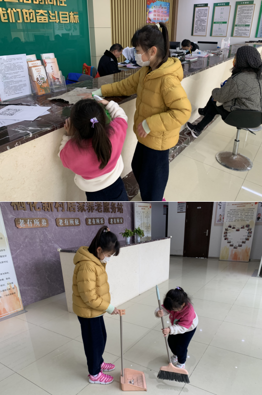 接著,青少年們主動(dòng)拿起掃帚、拖把、抹布,將社區(qū)養(yǎng)老服務(wù)站和便民服務(wù)大廳打掃干凈。