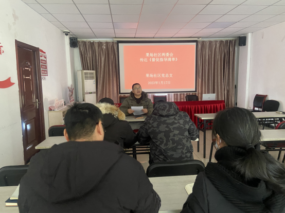 2023年1月17日,南京市棲霞區(qū)馬群街道果場(chǎng)社區(qū)黨總支在社區(qū)三樓會(huì)議室組織召開(kāi)社區(qū)“兩委”會(huì)議,向社區(qū)黨員干部傳達(dá)區(qū)組織部門(mén)《督促指導(dǎo)清單》,做好居民群眾具體服務(wù)工作,發(fā)揮基層黨組織效能。