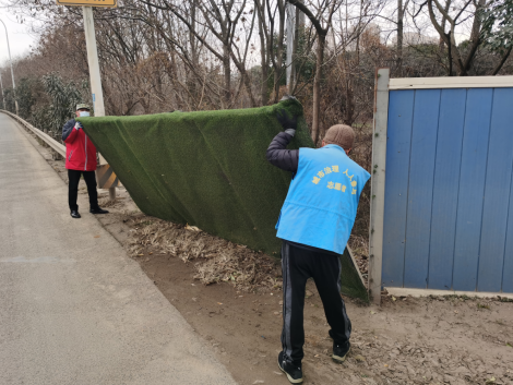2023年1月18日,為了保障居民出行安全,防止破損的圍擋對路過的居民造成傷害,南京市棲霞區(qū)棲霞街道紅梅社區(qū)城市治理公眾委員組織城市治理志愿者對破損的圍擋進行修復(fù),清理了圍擋邊的垃圾和落葉。