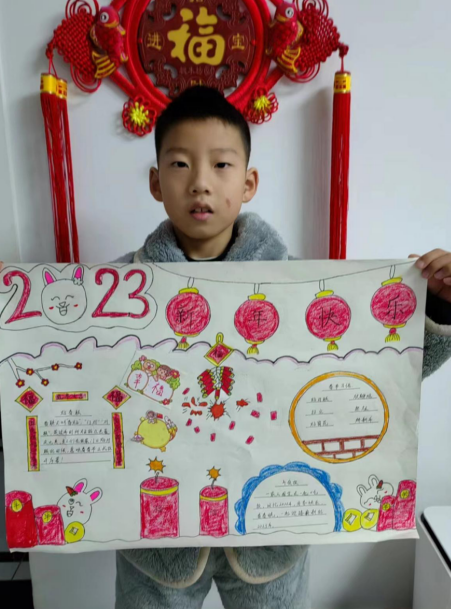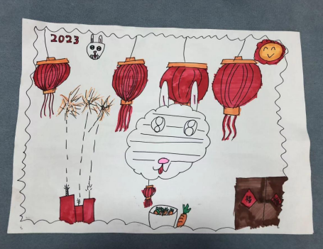 “春節(jié)是咱們國家的傳統(tǒng)節(jié)日,代表著團圓和幸福。過春節(jié)時你們印象最深的一件事兒是什么呀?除了穿上漂亮的新衣服、收到心儀的玩具,有沒有通過網(wǎng)絡(luò)詳細了解春節(jié)的傳統(tǒng)風俗,或者許下了美好的新春愿望呢?”大家充分發(fā)揮想象力和創(chuàng)造力,有的畫舞獅,有的畫燈籠,有的畫牛年吉祥物......經(jīng)過孩子家長的指導(dǎo)創(chuàng)作,一幅幅風格各異的作品展示在大家面前,孩子們開心地與自己的作品合影,在寒假即將結(jié)束之際,留下難忘的瞬間。