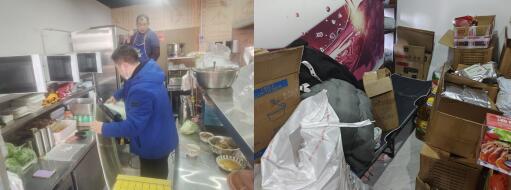 據(jù)了解,位于中南世紀雅苑門面房三樓的“蒙古人家”外賣店自開業(yè)以來不僅對外做著餐飲生意,還在單薄的門簾后面還堆放了大量的雜物,而在雜物之中便是他們工作之余休息的床鋪,很顯然這已經(jīng)構(gòu)成三合一場所的必備要素,一旦發(fā)生火情后果不堪設(shè)想。社區(qū)工作人員當(dāng)機立斷,在與店主交涉過安全隱患后要求他們立即對其進行整改。該店主由于開店不久,在社區(qū)工作人員的解釋下很快的意識到自己的錯誤,于是積極配合進行了整改。
