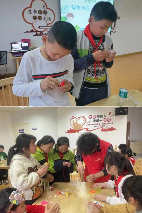 珍惜資源,保護資源,節(jié)約資源,人人有責(zé)。為了加深青少年們節(jié)約資源的意識,在老師的指導(dǎo)和帶領(lǐng)下,社區(qū)青少年們把撿拾回來的塑料瓶用剪刀剪成上下兩半,將瓶蓋處戳出小孔,倒著放進瓶子下半身,自制成一個個自吸水的花盆。有趣的制作過程讓青少年們對節(jié)約資源更加印象深刻,能夠帶動大家從現(xiàn)在做起,從我做起,從點點滴滴做起,珍惜地球賜予的一切自然資源,使家園年年春光燦爛。