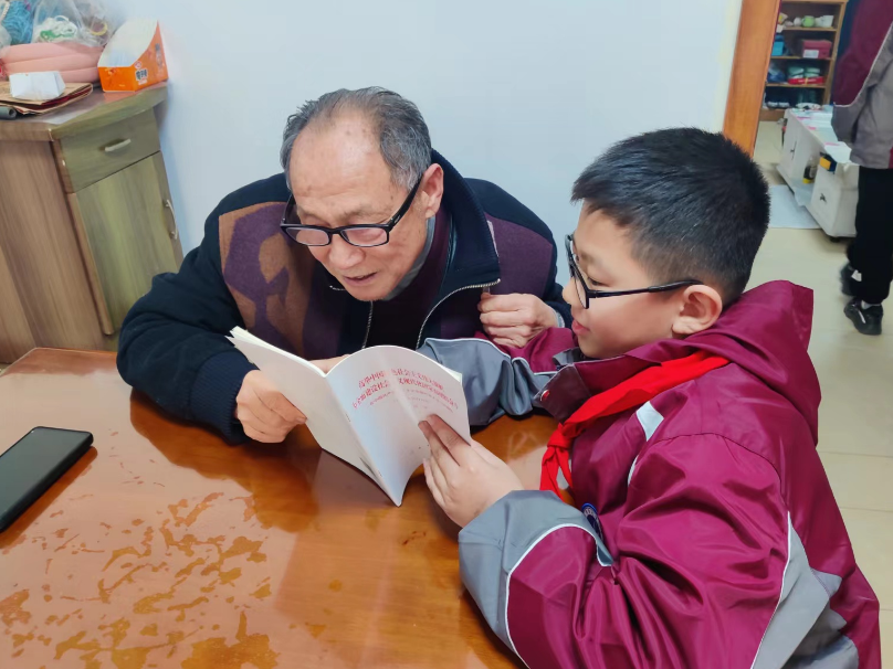 活動(dòng)過程中,社區(qū)工作人員細(xì)心地詢問老黨員的身體、生活情況及精神文化生活狀況,隨后安排南灣營小學(xué)的學(xué)生將《中國共產(chǎn)黨第二十次全國代表大會(huì)上的報(bào)告》《黨的二十大學(xué)習(xí)問答》等學(xué)習(xí)資料送到老黨員手中,通過誦讀二十大報(bào)告的方式,讓老黨員體會(huì)到黨的二十大精神真實(shí)可感,使之決心要全面學(xué)習(xí)、全面把握、全面落實(shí)黨的二十大精神,與黨員們團(tuán)結(jié)在黨和政府周圍,共同奮斗譜寫新時(shí)代新篇章。