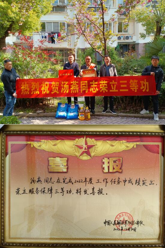 為進(jìn)一步弘揚(yáng)擁軍優(yōu)屬的優(yōu)良傳統(tǒng),鼓勵(lì)現(xiàn)役軍人在部隊(duì)安心服役,近日,南京市江寧區(qū)東山街道邵圣社區(qū)走訪慰問榮獲三等功軍人湯燕同志的家屬,現(xiàn)場(chǎng)宣讀喜報(bào),向湯燕同志的家屬表示祝賀。