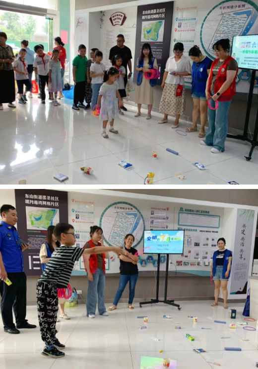 通過答題可以換取套圈,答對(duì)的題越多,獲得的套圈就越多,換到套圈以后可以進(jìn)行“大作戰(zhàn)”,贏取生活和學(xué)習(xí)用品,活動(dòng)現(xiàn)場(chǎng)歡聲笑語不斷,孩子和家長們?cè)谳p松愉快的氛圍中提升垃圾分類意識(shí),培養(yǎng)了綠色環(huán)保的生活習(xí)慣。