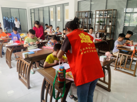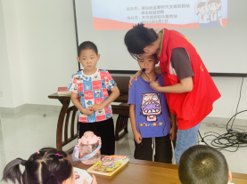 活動伊始,志愿者首先向孩子們宣講了“八一”建軍節(jié)的意義、革命先輩保家衛(wèi)國抗日戰(zhàn)爭的光榮事跡,激發(fā)孩子們學(xué)習(xí)革命精神、珍惜來之不易的美好生活,從小樹立擁軍愛國的思想理念。緊接著,志愿者帶領(lǐng)孩子們一起閱讀《紅色少年的故事》、《鐵道游擊隊(duì)》、《兩個小八路》等紅色書籍,并在孩子們閱讀之后邀請他們上臺發(fā)表自己的感想。為了鼓勵孩子們大膽表達(dá),志愿者還給孩子們準(zhǔn)備了小禮物。