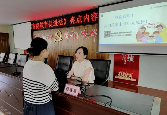 為進(jìn)一步優(yōu)化婦女兒童生存和發(fā)展環(huán)境,發(fā)揮法治宣傳教育在維護(hù)婦女兒童合法權(quán)益、促進(jìn)社會(huì)和諧穩(wěn)定中的重要作用,江蘇省婦女聯(lián)合會(huì)、江蘇省婦女兒童福利基金會(huì)聯(lián)合實(shí)施“我助婦兒康·婦兒權(quán)益維護(hù)與安全守護(hù)課堂”公益項(xiàng)目。為推動(dòng)此項(xiàng)目在基層落地發(fā)芽,8月6日,南京市江寧區(qū)江寧街道新銅社區(qū)婦聯(lián)結(jié)合“三全”家庭教育支持行動(dòng),聯(lián)合江蘇協(xié)恒律師事務(wù)所,在家長(zhǎng)學(xué)校開展了“我助婦兒康·婦兒權(quán)益維護(hù)與安全守護(hù)課堂”之“《家庭教育促進(jìn)法》亮點(diǎn)內(nèi)容及案例解讀”法治宣傳講座。