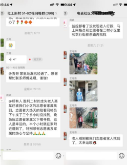 看到掌上云群消息后社區(qū)網(wǎng)格員、志愿者立即采取行動(dòng),聯(lián)系民警,查看監(jiān)控,8個(gè)掌上云社區(qū)微信群轉(zhuǎn)發(fā)尋人啟事,小區(qū)內(nèi),菜場(chǎng),店鋪,公交,地鐵地毯式搜索,電瓷新村掌上云群主葉斌把尋人啟事轉(zhuǎn)發(fā)至街道請(qǐng)求所有社區(qū)掌上云居民群幫忙轉(zhuǎn)發(fā),全方位多措施尋找。高溫酷暑天氣,老人晚一點(diǎn)找到就多一份危險(xiǎn),大家中午持續(xù)性尋找,一刻也不愿停下,至晚上9點(diǎn)多找到回到家中,歷經(jīng)14小時(shí),在社區(qū)網(wǎng)格員及志愿者的共同努力下,老人終于平安回到家中。