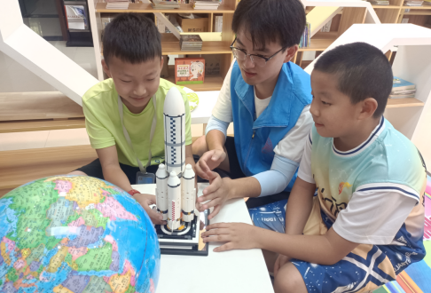 “火箭能有多大?火箭是怎樣飛上天的?”......課上,社區(qū)科普志愿者首先借助長征五號(hào)運(yùn)載火箭模型,用通俗易懂的語言為小學(xué)員們科普了長征五號(hào)運(yùn)載火箭的命名規(guī)則、箭體結(jié)構(gòu)、升空使命和發(fā)射運(yùn)行等知識(shí),帶少兒們一同探索運(yùn)載火箭奧秘的同時(shí),還為少兒們普及了我國航天發(fā)展成就,講述了東方紅一號(hào)人造衛(wèi)星、神舟系列載人飛船、天宮號(hào)空間站等,科普了航天發(fā)射基地的選址條件及我國四大航天發(fā)射場,并帶少兒們通過地球儀進(jìn)行了找尋?,F(xiàn)場,科普志愿者與少兒們交流互動(dòng),學(xué)習(xí)氛圍濃厚。