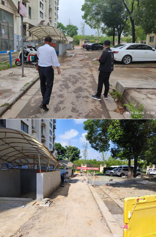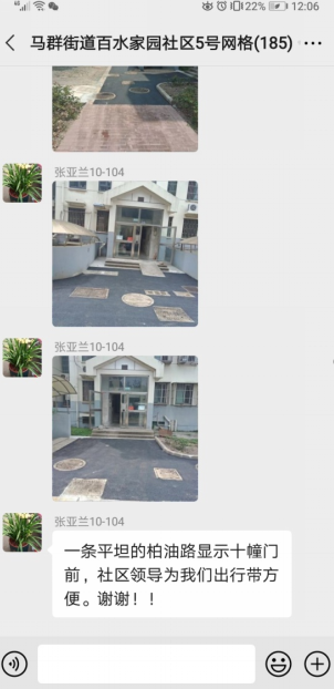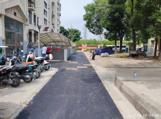 工程開始之前,百水家園社區(qū)新時代文明實踐站開展了居民“線上線下”議事會,討論通過了該路段的維修方案。該工程于2023年8月1日進場,8月15日竣工,原本一條破損低洼的路面煥然一新,變成了一條嶄新的柏油路面,增加了2個雨水篦子,修復了原本低洼破損的單元門前道路。居民們在現(xiàn)場和微信群里都表達了對社區(qū)的感謝。