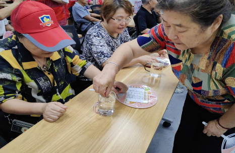 活動現(xiàn)場,志愿者生動介紹七夕的來歷以及相關(guān)民俗活動,讓大家深刻體會乞巧活動的文化寓意和內(nèi)涵,感受七夕文化所蘊(yùn)含的美好情懷。乞巧活動精彩紛呈,在“穿針取巧”環(huán)節(jié),居民手拿五色彩線,找準(zhǔn)針孔細(xì)心穿線,比賽誰穿得越快,乞到的巧就越多。大家聚精會神地捻線穿針,手藝巧的輕輕松松就穿進(jìn),穿針困難的居民也在志愿者的指導(dǎo)下穿線成功。“投針驗(yàn)巧”是通過把繡針放入形成水膜的容器中,看其能否漂浮、在容器底部形成圖案,以驗(yàn)智巧。居民們躍躍欲試,小心翼翼地放下細(xì)針,看著水杯中成功漂浮的銀針,露出燦爛的笑容。