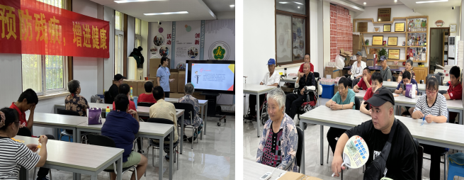 活動(dòng)前期社區(qū)利用宣傳欄、電子顯示屏、微信公眾號(hào)大力宣傳殘疾預(yù)防的相關(guān)知識(shí)。活動(dòng)中,社區(qū)康復(fù)站治療師李莉通過(guò)圖文講解、案例分享的方式為社區(qū)居民及殘疾人講解了遺傳、發(fā)育障礙、疾病等致殘的相關(guān)知識(shí),引導(dǎo)社區(qū)居民了解預(yù)防殘疾的必要性,幫助大家提升日常自我防護(hù)能力,遠(yuǎn)離致殘風(fēng)險(xiǎn)。