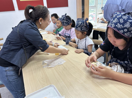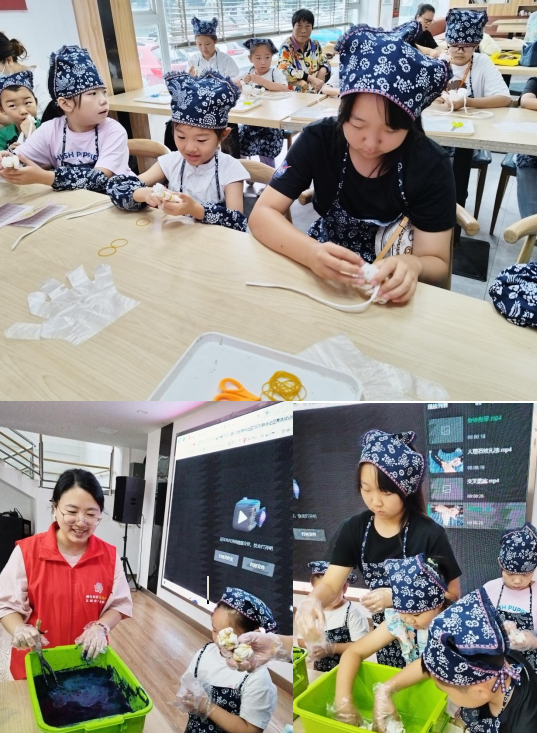 接著,志愿者們引導孩子們逐步學習扎染的步驟,從準備材料到選擇圖案,再到上色扎染。在這個扎染活動中,孩子們充分體驗到了親手創(chuàng)作的樂趣。他們用專業(yè)的扎染工具,將自己的設計和創(chuàng)意融入到織物中,一針一線地勾勒出美麗的圖案。他們體會到了扎染的獨特之處,每一次的操作都是一次細膩的藝術表達。孩子們的眼神中充滿了興奮和自豪,他們不僅僅是在創(chuàng)作,更是在用心傳承著扎染這門古老的技藝。
