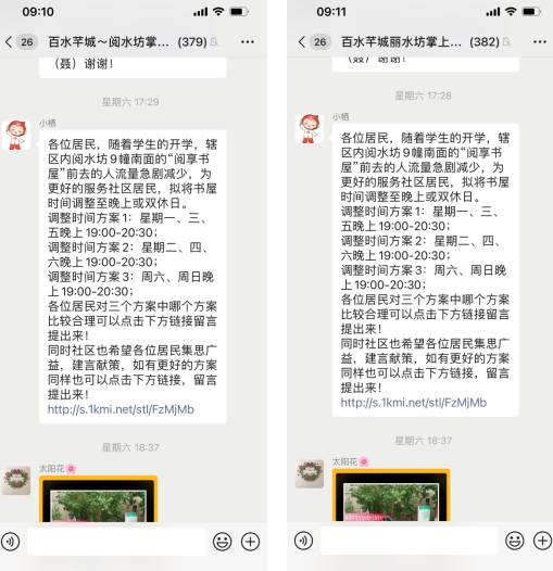 百水芊城社區(qū)通過“掌上云”線上協(xié)商調(diào)整閱讀陣地開放時間