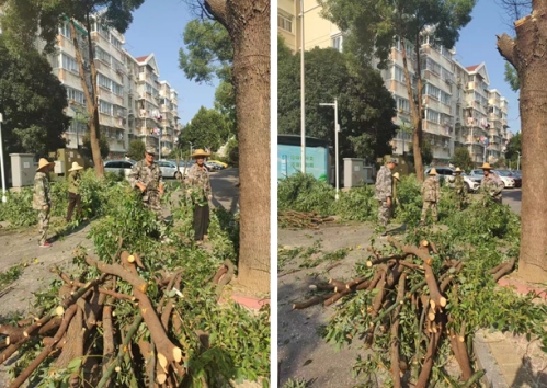 秋日高照,百水家園社區(qū)民兵連聯(lián)合多部門開展修樹行動
