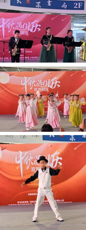 本次活動,來自太陽城小學,花港一小,東郊小學,天悅花園幼兒園的孩子們在舞臺上大放異彩,含著飽滿的熱情為祖國母親慶生,為團圓之夜喝彩。