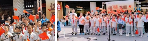 升旗儀式結(jié)束后,活動(dòng)進(jìn)入了尾聲,大家來(lái)到了花園城。小朋友和志愿者排好隊(duì)列,手舉紅旗,一起合唱了激動(dòng)人心的歌曲——《歌唱祖國(guó)》。每個(gè)人都心潮澎湃,熱血沸騰,展現(xiàn)了當(dāng)代學(xué)子朝氣蓬勃的精神面貌和滾燙的赤子心,活動(dòng)結(jié)束。