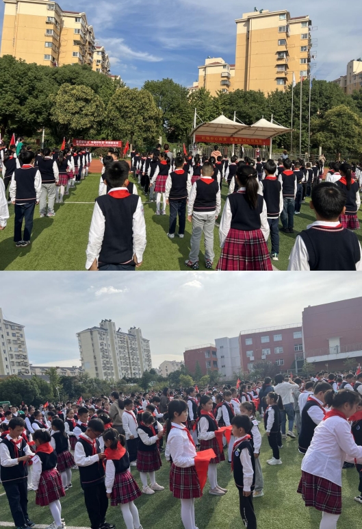 隨后,焦點轉向新加入的少先隊員。在社區(qū)黨總支領導和學校老師的見證下,少先隊員們一個個莊重地走上舞臺,戴上了象征紅領巾的標志物,宣誓成為中國少年先鋒隊最新一批的隊員。他們將以紅領巾為榮,肩負起為人民服務、助人為樂的責任。