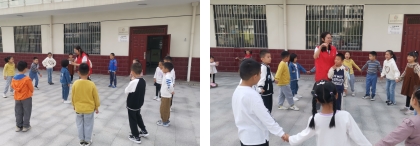 活動(dòng)開始,志愿者帶領(lǐng)孩子們一起開展蒙眼抱一抱的游戲,以抽簽的方式隨機(jī)選中一個(gè)小朋友蒙眼站在廣場(chǎng)中央,其他小朋友和社工一起手拉手變成一個(gè)大圈圍住他,然后手拉手的小朋友一起邊轉(zhuǎn)圈邊唱《小白兔》,歌曲唱完就定住不動(dòng),由蒙眼小朋友開始抱人,被抱住的小朋友上臺(tái)背誦一首古詩(shī),游戲中歡聲笑語(yǔ)不斷。