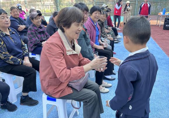 隨后,小朋友們準(zhǔn)備的另一個驚喜令現(xiàn)場的氣氛更加溫馨。他們親手采摘了鮮嫩的菊花,將其放入熱水中泡制成菊花茶。小朋友們親自為爺爺奶奶們倒上自己泡制的菊花茶,這份親手制作的茶品充滿了他們的關(guān)愛和感恩之心。爺爺奶奶們感受到了小朋友們真摯的情感,品嘗著茶水中散發(fā)出的芬芳和溫暖。