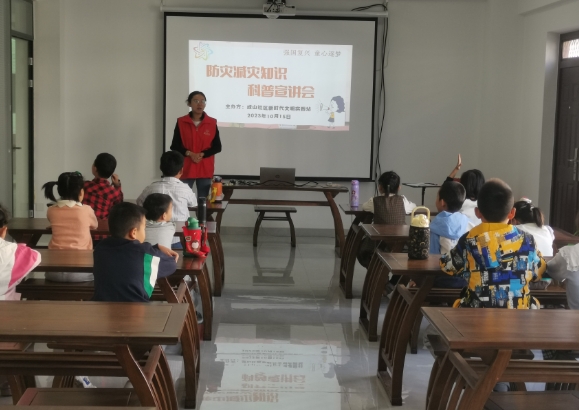 10月15日,志愿者給小朋友們科普了“國際減災(zāi)日”的小知識,通過圖片、視頻、故事等方式,向小朋友們介紹應(yīng)對地震、火災(zāi)、臺風、雷雨等自然災(zāi)害的自救逃生方法,進一步讓小朋友們了解一些防災(zāi)減災(zāi)科學知識,懂得基本的自護、自救措施,提高避災(zāi)自救能力,學會保護自己。10月30日,邀請講師以親身救援故事為切入點,從地震自救、防溺水、消防安全等方面,展示救援裝備器材,講解自救互救知識,給小型場所從業(yè)人員及居民帶來了一堂生動有趣的安全教育課。