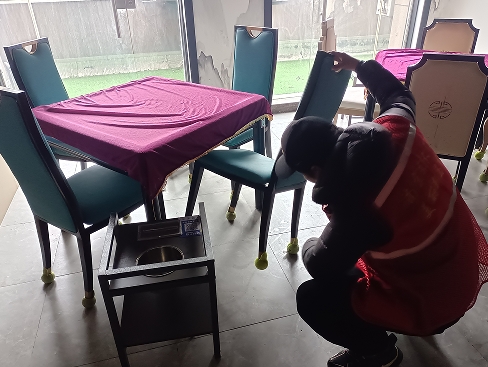 隨后社區(qū)環(huán)保工作者到棋牌室了解情況,棋牌室負責人表示確實有多次因為噪音情況被該訴求人投訴致使110出警干預,但同時也說明了棋牌室內(nèi)情況,據(jù)該商戶負責人口述,室內(nèi)噪音并不大,且夜間只有二樓包間有很少的客人,包間內(nèi)有隔音設施,且在被投訴人投訴后,負責人為所有桌椅腳都裝上了網(wǎng)球墊用以降低噪音。社區(qū)人員查看了桌椅腳全部都墊有隔音網(wǎng)球墊,情況如商戶負責人所訴。