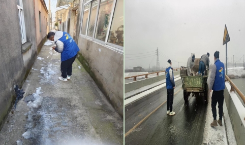 近日,隨著氣溫持續(xù)下降,受低溫天氣影響,湖熟街道晶明村部分路段存在積雪、結(jié)冰及霜凍現(xiàn)象,給村民出行帶來諸多不便。為了預(yù)防和減少滑到、摔傷事故發(fā)生,確保村民出行安全,南京市江寧區(qū)湖熟街道晶明村001號網(wǎng)格員魏晨旭聯(lián)合志愿者們開展撒鹽除冰志愿服務(wù)活動(dòng)。