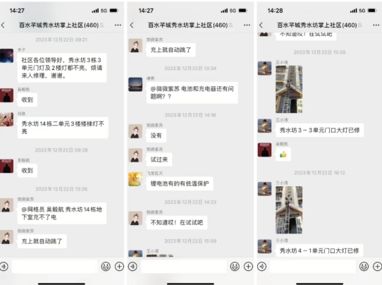百水芊城社區(qū)“掌上云”微信群的建立,架起了社區(qū)網(wǎng)格員與居民之間溝通的橋梁,讓群眾及時(shí)發(fā)現(xiàn)問題,社區(qū)工作人員接訴即辦,急居民之所急,應(yīng)居民之所呼,為居民解決困難,溫暖了居民的心。