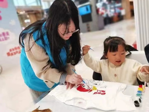 參加活動(dòng)的家長(zhǎng)紛紛表示:這樣的活動(dòng)很有意義,既能發(fā)揮孩子的想象,又能給孩子的成長(zhǎng)留下美好的紀(jì)念,孩子拿到T恤很有成就感。創(chuàng)作完成后,孩子和家長(zhǎng)向大家展示了他們共同創(chuàng)作的作品,其樂(lè)融融的氛圍為春天增添了別樣的溫馨,志愿者用相機(jī)記錄了這美好的瞬間。