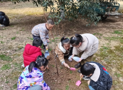 活動開始社工為孩子們講解了植樹節(jié)的來歷,接著家長代表和志愿者們用鐵鍬、鏟子挖坑,孩子們有的扶著小樹苗,有的給小樹培土澆水,大家一起種上一棵棵希望之樹;孩子還在老師和家長的組織下認領自己護養(yǎng)的小樹,并給樹木掛上精心制作的綠色標語牌。