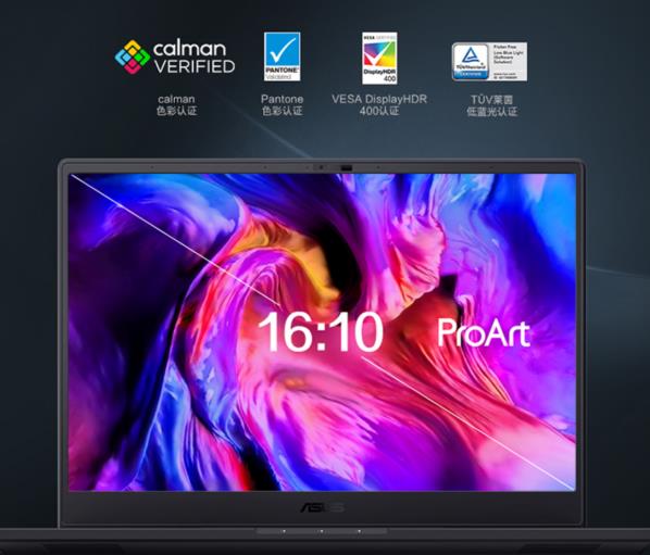 一塊高素質(zhì)屏幕是創(chuàng)意綻放的根本所在。ProArt創(chuàng)16搭載一塊16英寸的2.5K 120Hz高刷屏幕,16:10黃金比例,可顯示更多內(nèi)容;10bit色深,支持100%DCI-P3專業(yè)級色域,并通過了Pantone色彩認證,色彩飽滿豐富,無論是處理色彩飽和度極高的藝術圖片還是逐幀修復視頻,都能為用戶還原更精準、飽滿的逼真畫面;峰值亮度500nit,還通過VESA Display HDR 400認證,讓黑色更純粹;120Hz高刷新率,畫面更為流暢絲滑,滿足用戶對屏幕的嚴苛要求;還支持TÜV萊茵低藍光認證,護眼更健康。