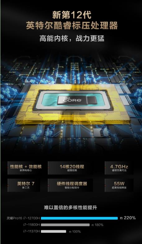 第12代標(biāo)壓處理器i7-12700H采用性能核+效能核新異構(gòu)核心,擁有14核20線程的超強(qiáng)規(guī)模,其極致功耗釋放可以達(dá)到85W,綜合性能對(duì)比上一代提升高達(dá)220%。即使進(jìn)行復(fù)雜的視頻處理,依然能保持飛一般的流暢快感,肆意揮灑靈感,保證創(chuàng)作效果的同時(shí)極大地提升工作效率。