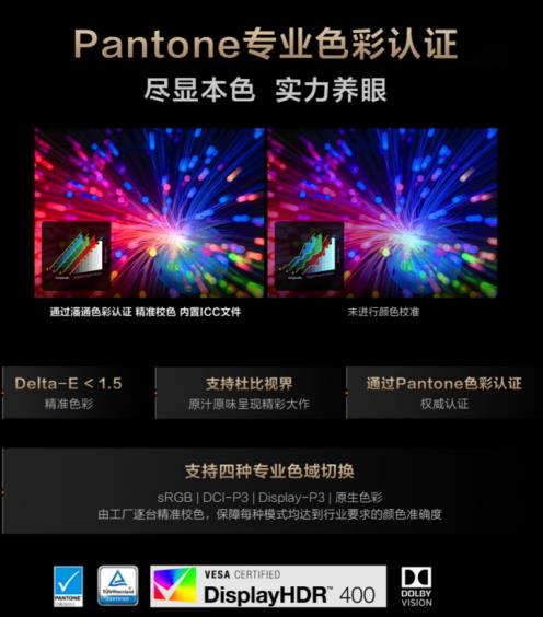 靈耀Pro16 2022的這塊擁有100% DCI-P3影院級廣色域的屏幕還內(nèi)置了定制ICC文件(平均Delta E<1.5),擁有Pantone色彩認(rèn)證、VESA DisplayHDR True Black 400認(rèn)證,讓屏幕中所呈現(xiàn)的內(nèi)容更貼近真實,也為HDR視頻觀影和內(nèi)容創(chuàng)作奠定了良好基礎(chǔ)。