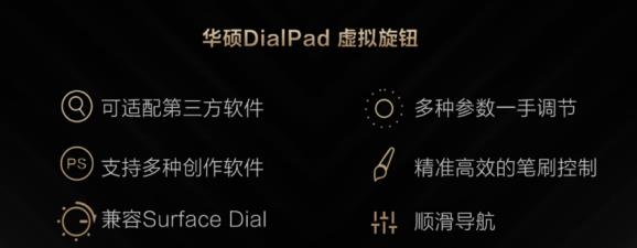 華碩獨有的DialPad虛擬旋鈕進(jìn)一步優(yōu)化迭代,為用戶提供了更加智能的創(chuàng)作體驗。DialPad虛擬旋鈕擁有70多種功能,多種參數(shù)一手控制,多種筆刷指尖調(diào)節(jié),圖層、時間軸等功能精準(zhǔn)控制,讓創(chuàng)作工作流程將會變得更加順暢。華碩DialPad虛擬旋鈕目前可兼容多款創(chuàng)作辦公軟件,也兼容Surface Dial等輔助設(shè)備。