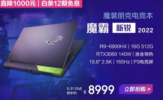 想要充值ROG信仰的玩家則可以選擇魔霸新銳2022,配置銳龍9 6900HX及140W滿血RTX 3060顯卡,液金導(dǎo)熱加持的冰川散熱系統(tǒng)為高性能游戲全面護(hù)航,2.5K 165Hz P3色域?qū)I(yè)電競(jìng)屏,無(wú)論是游戲或是日常觀影娛樂(lè)都是沉浸視野體驗(yàn),5月31日晚8點(diǎn)到手僅需8999元,買(mǎi)到就是賺到!